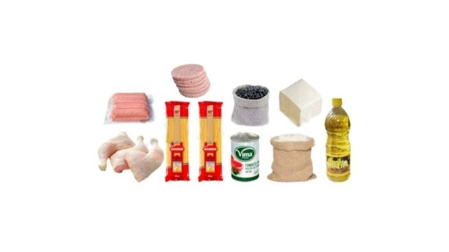Combo de alimentos ideal para cualquier receta con carnes. Incluye pollo, cerdo, pescado, carne de res, aceite y pasta de tomate.